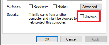 ***Attention, the driver help will be downloaded locally in .zip format, once unzipped, to correctly read the .chm file inside, it will be necessary to open the file properties -> General and activate the "Unblock" Property of the "Security" group (see image).