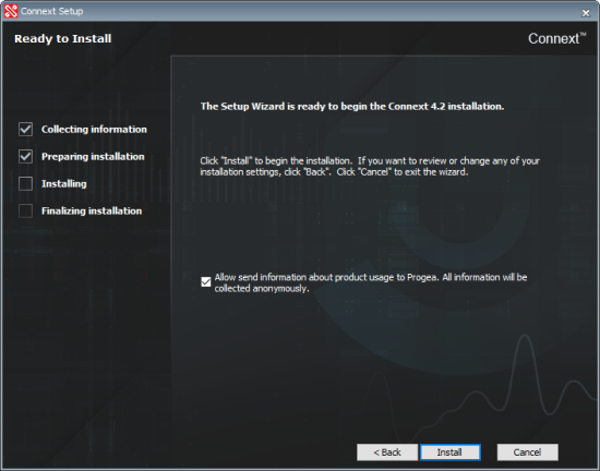 The next step is to initialize the actual installation of the files on the machine. Click on the Install button to start the installation of the software.