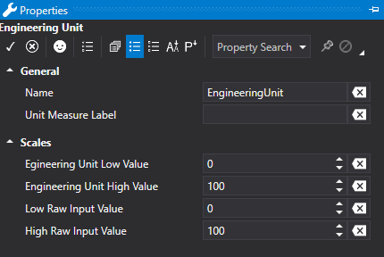 Once the Engineering Unit has been inserted, you can configure the properties as described below.