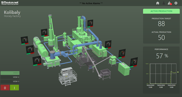 In addition to this, the operator can interact with the 3D object on screen and rotate or zoom it as pleased. Different 'views' can be stored and recalled for later use. The views may be called on event so that the object can to be positioned appropriately in function with the system's status or events.