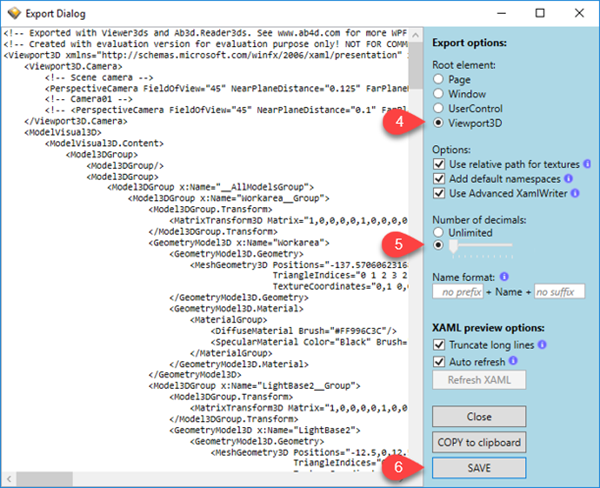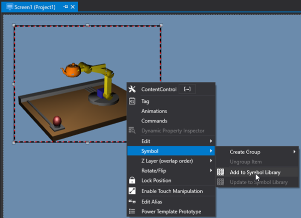 Attention! If you need to animate elements of an imported 3D file, insert the “ProblematicXamlWriter” tag in the symbol's code as indicated in the above paragraph on “Xaml file structure importing". |