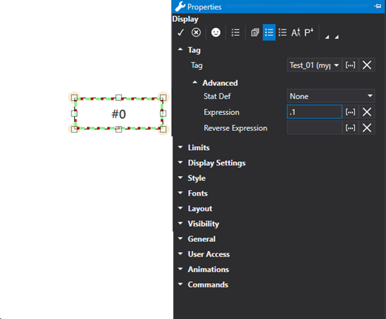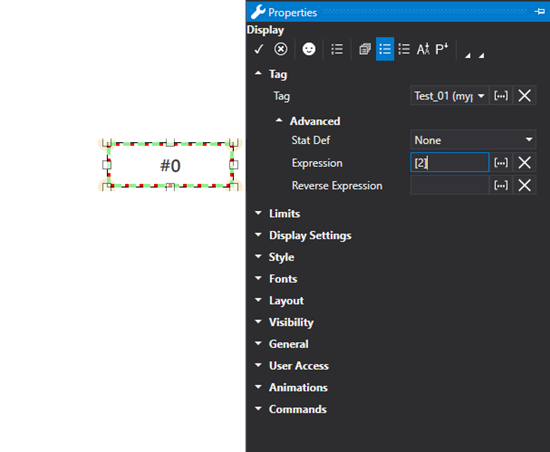 Movicon.NExT supports the possibility to specify and assign a single bit of a byte, word, or double variable type or a single element of a data Array when assigning Tag variables to symbols or objects.