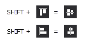Editing groups of objects can be made easier by using the Alignment commands or using the toolbar buttons relating to the screen or the 'Align' command available from the "Layout" menu. These commands activate after selecting a group of objects and they always refer to the reference object. The reference object will be the one highlighted in the group of objects. In cases where a multi-selection has been the CTRL+CLICK command, the reference object will be the one in the last group selected and will be highlighted to distinguish it from the rest.