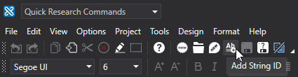 To add strings that have already been used in the project to the Text Table in order to translate them into different languages, use the Options menu > Add String ID, or the icon in the Main Toolbar.