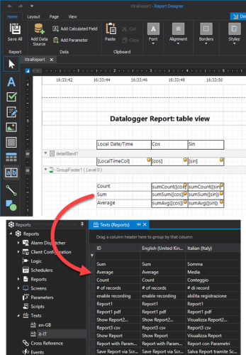 Therefore, when "String IDs" that are present in the text table are used in a report's labels, they will be replaced with the language currently in use at Runtime, just like they do in the project screens.
