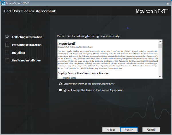 Once the prerequisites have been met, you can go ahead with installing the Deploy Server by accepting the terms of the user license agreement: