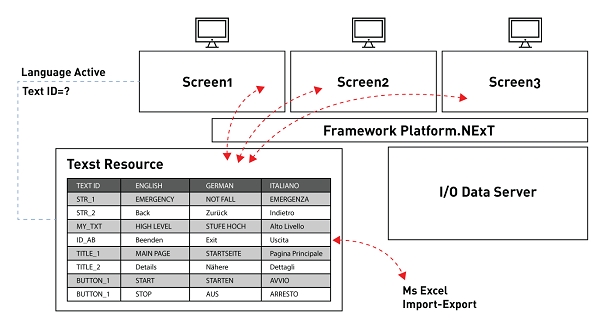 Generally a graphical interface project has to display and manage text strings to be displayed in screens as simple text and as headings, names and text in objects.