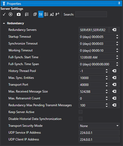 Redundancy Server Properties