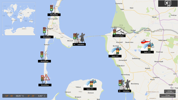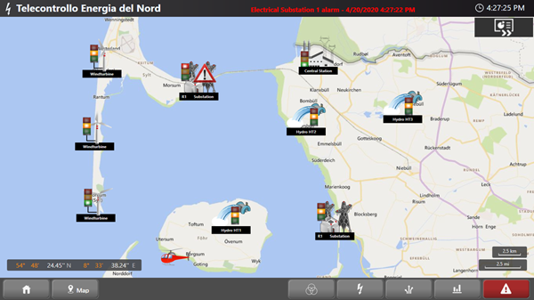 Movicon.NExT supports a Geo Page feature which integrates geographic maps and geo-localization managements in screens. This feature is used for creating geo-localized projects to handle maps on screens that can be used to navigate and integrate dynamic data from the project.