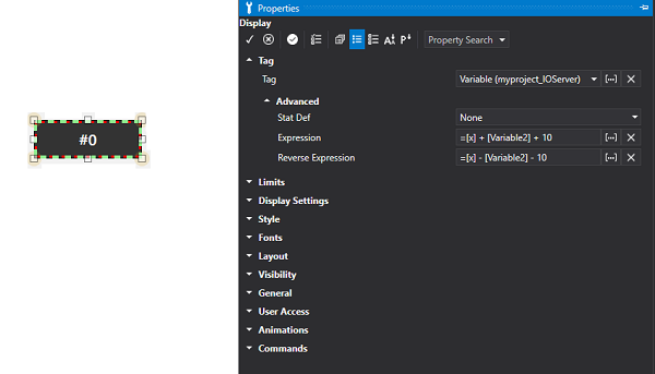 At this point, if the value inserted in the Display is 20, and the value of the "TagServer_Name2" is 2, the “TagServer_Name1” will be set set with the resulting value of the expression, being: