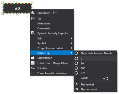 The rotation cannot be edited for the Pipeline, PolyBezier, Line, Polygon and Polyline controls. These control types need to grouped with other controls in order to change their position or rotate them at runtime. Therefore, the rotation menu cannot be selected for the Pipeline, PolyBezier, Line, Polygon and Polyline controls. |