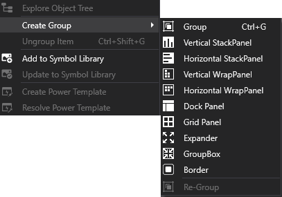 Stack Panel: This is used to horizontally or vertically stack the selected objects one on top of the other, or side by side without touching. This type of grouping is handy when creating list of objects such as button bars.