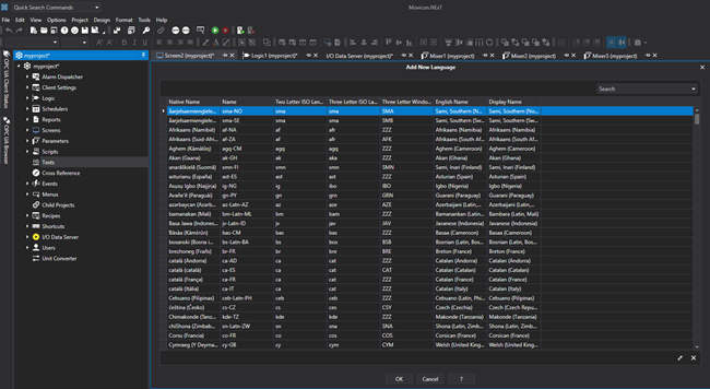 Movicon provides the possibility to load the string table from custom files inserted in the project's string folder. For further information please see the topic on: Runtime Strings. |