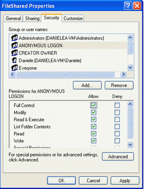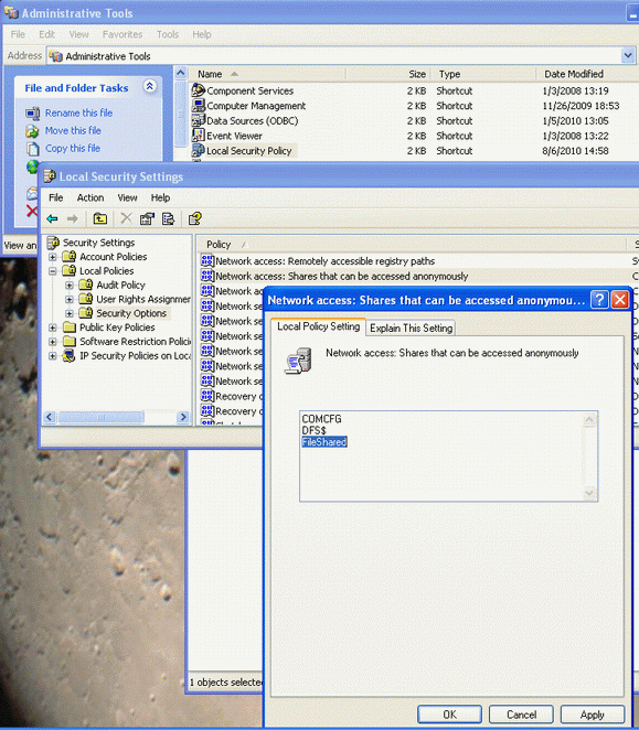 Answer:When Movicon is launched as Windows service, attempts to access files or folders on other PCs over the net may fail. This is due to the fact that when an application is started up as service using system users, their logon is executed with null credentials causing any access to the remote PC resources to fail. To remedy this problem the folders, which must be accessed on the remote PC, must be configured as described below to allow remote access by connecting anonymously: